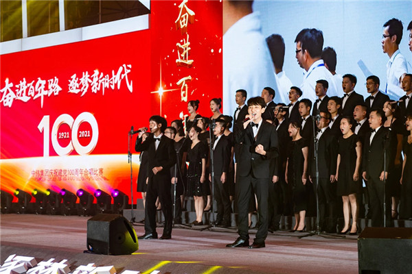 At the host's announcement, the chorus competition officially began. Eight teams from various business divisions and industrial bases took the stage one after another. They either dressed in brilliant and colorful costumes, or dressed in solemn and meaningful Red Army uniforms. Under the guidance of their music teachers, they reviewed and commemorated the centennial struggle of the Communist Party of China with the most loud and soulful songs.