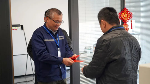 在寧鄉產業基地,每個人臉上都洋溢著幸福的微笑,各車間、廠區、部門的每位員工都收到了來自公司領導的新年祝福和開工紅包。公司領導與大家親切交談,并對春節期間堅守一線的同事表示衷心的感謝。新的一年,寧鄉產業基地全體員工將精益求精、變革創新,持續推動公司高質量發展。