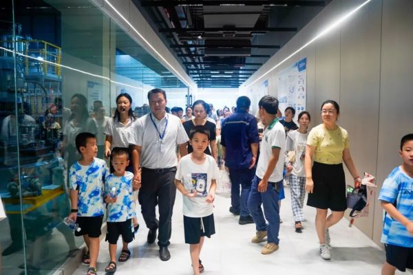 在中偉全球研發(fā)中心,小朋友們近距離參觀了中控室、檢測(cè)室、量試車間等,一雙雙充滿好奇的眼光,跟隨著探索官的講解努力地吸收知識(shí),對(duì)新能源材料的產(chǎn)品研發(fā)過程有了一個(gè)初步的認(rèn)知。